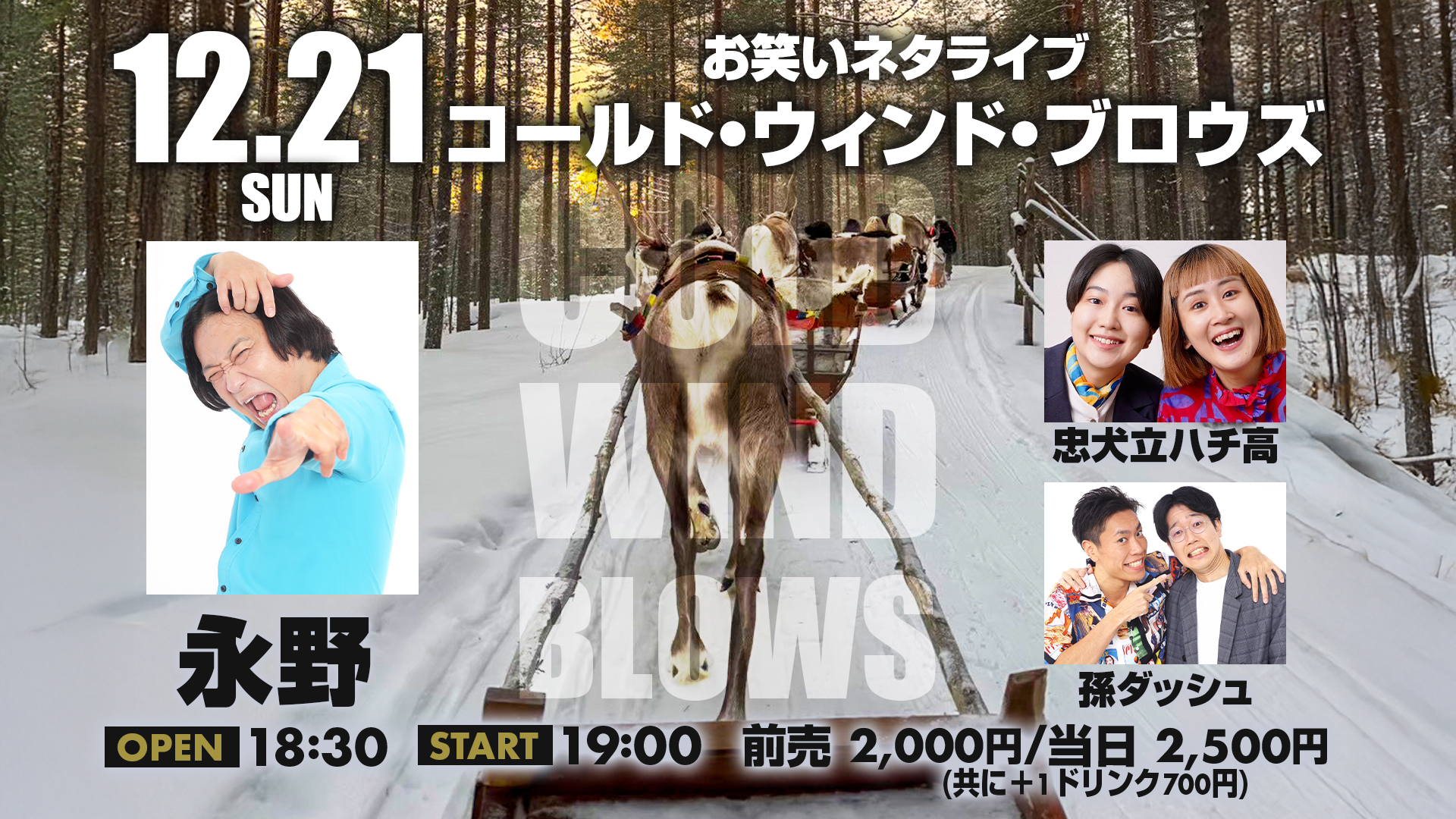 2025/12/21【出演】永野忠犬立ハチ高孫ダッシュ(吉村 土屋)【時間】開場 18:30開演 19:00【来場チケット】◆前売:¥2,000-◆…