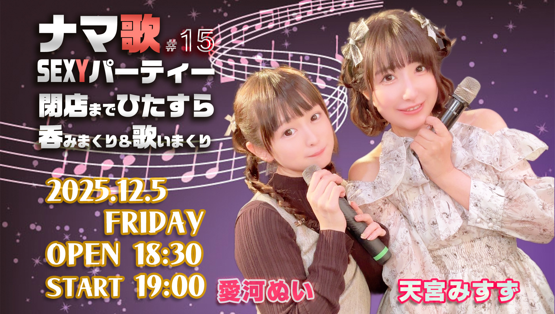 12/5(金) ナマ歌SEXYパーティー#15 天宮みすず&愛河ぬいが閉店までひたすら吞みまくり&歌いまくり