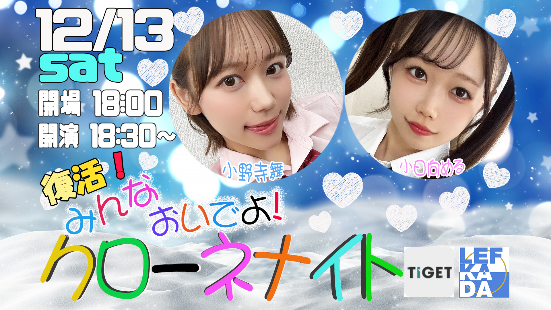 2025/12/13【出演】小野寺舞小日向める【時間】開場18:00 / 開演18:30 (20:30終了予定)※本イベント会場はレフカダ新宿ではなく同ビル3Fが会場に…