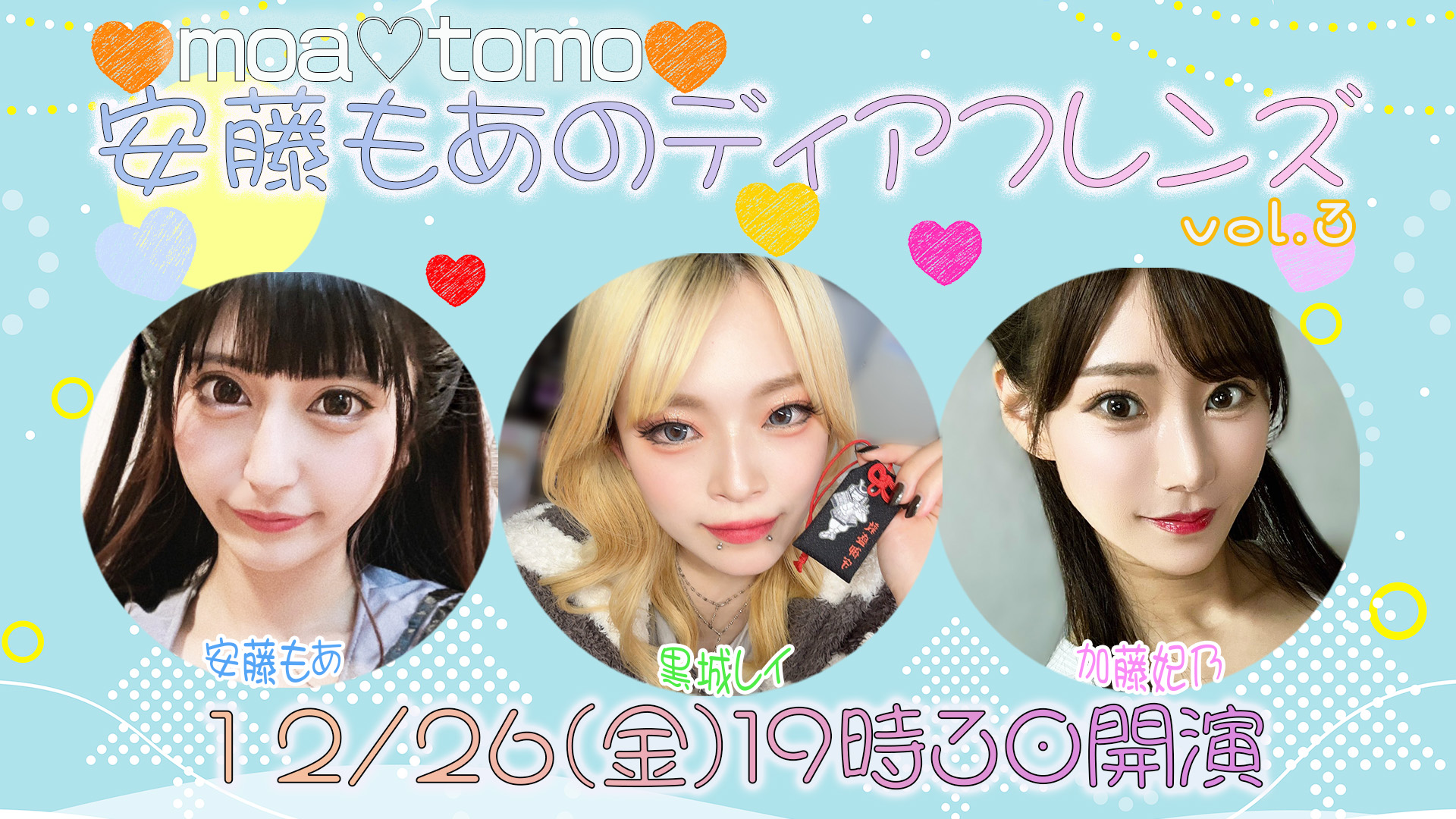 2025/12/26【出演】安藤もあ 黒城レイ加藤妃乃【時間】開場19:00 / 開演19:30 (21:30終了予定)※本イベント会場はレフカダ新宿ではなく、同ビ…
