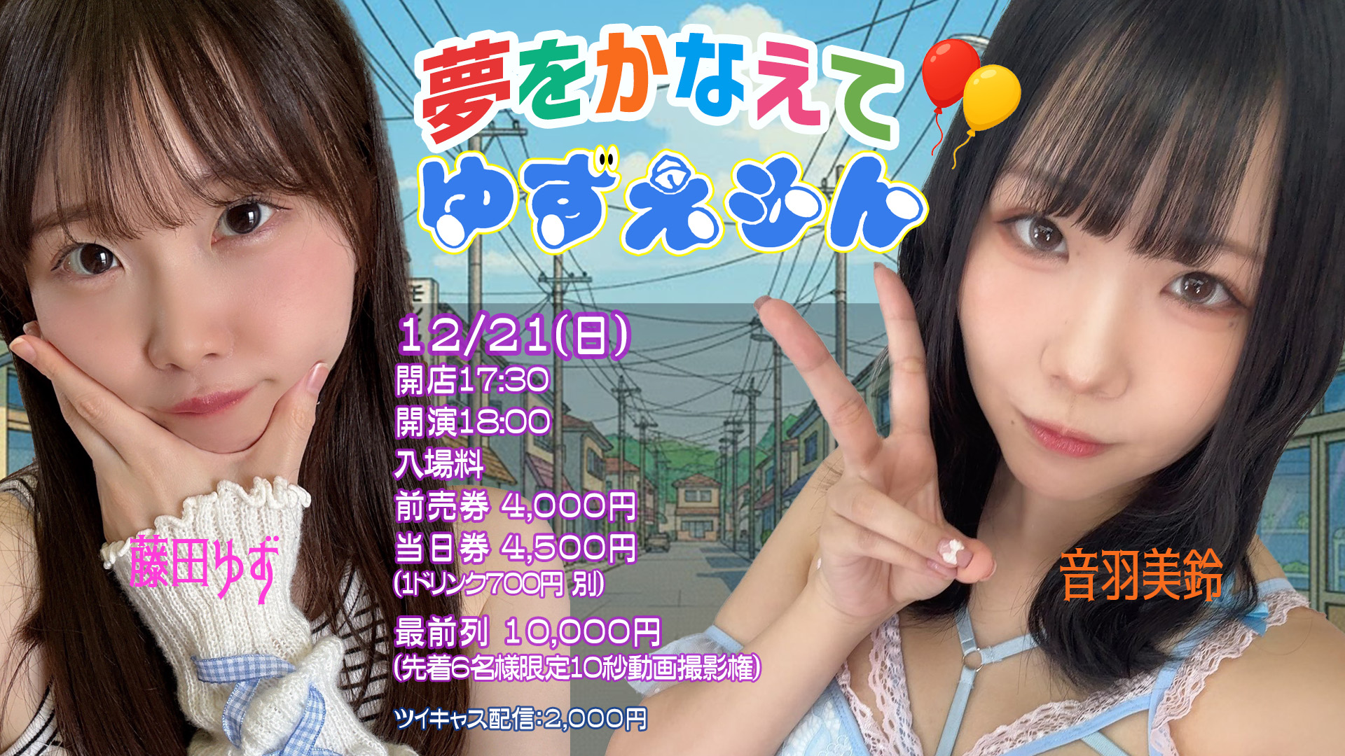 2025/12/21【出演】藤田ゆず【スペシャルゲスト】音羽美鈴 【場所】レフカダ(レフカダ同一ビルの別会場になるので入場方法等購入者にメールでお知らせいたします。…