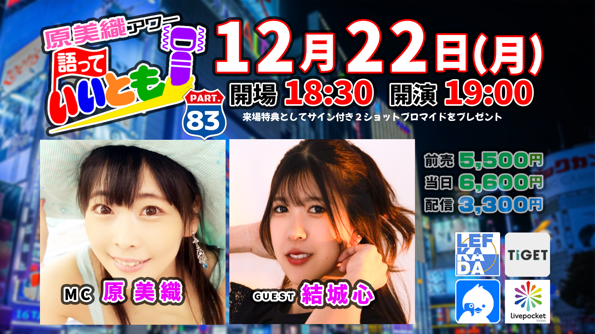 2025/12/22【出演】原美織結城 心(順不同・敬称略)【時間】◆開場 18:30◆開演 19:00※会場は3Fとなります【入場チケット】…