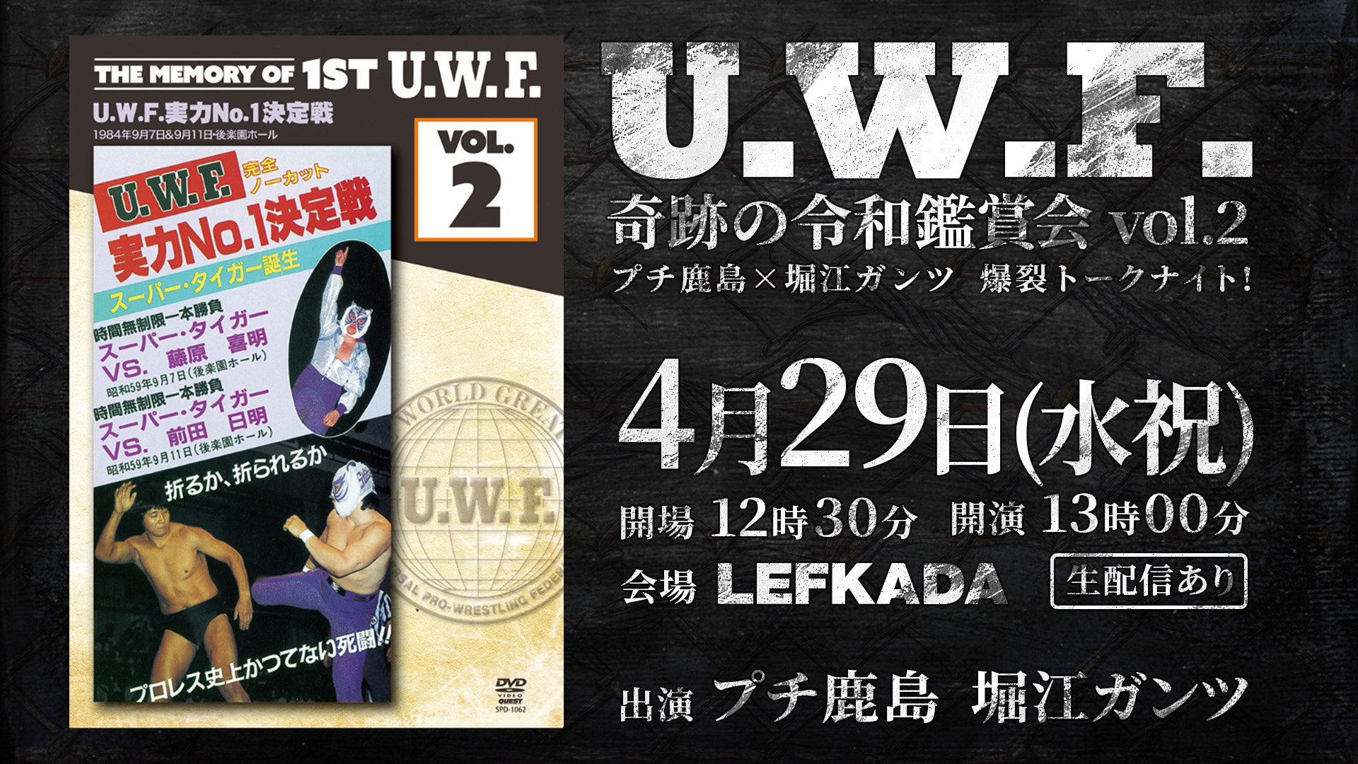 4/29(水祝) U.W.F.奇跡の令和鑑賞会 vol.2 ~プチ鹿島×堀江ガンツ 爆裂トークナイト! 4月 29 4/29(水祝) U.W.F.奇跡の令和鑑賞会 vol.2 ~プチ鹿島×堀江ガンツ 爆裂トークナイト! Featured 13:00 - 15:00